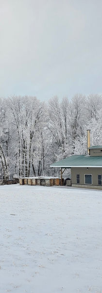 We collect our maple sap from roughly 400 trees across 20 acres. Starting as early as February, we can begin collecting the maple sap. The exact timing is driven by the temperature: the temperature must fluctuate above and below freezing (32 degrees) to trigger the sap to move through the tree. We capture a small amount of the trees total sap through a tap. The slow drip of sap is collected in bags and brought back to the "sugar shack" to be cooked down into syrup.